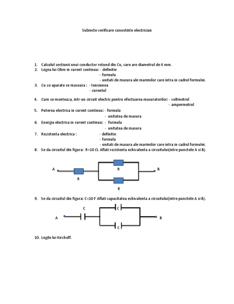 Testare Cunostinte Electrician